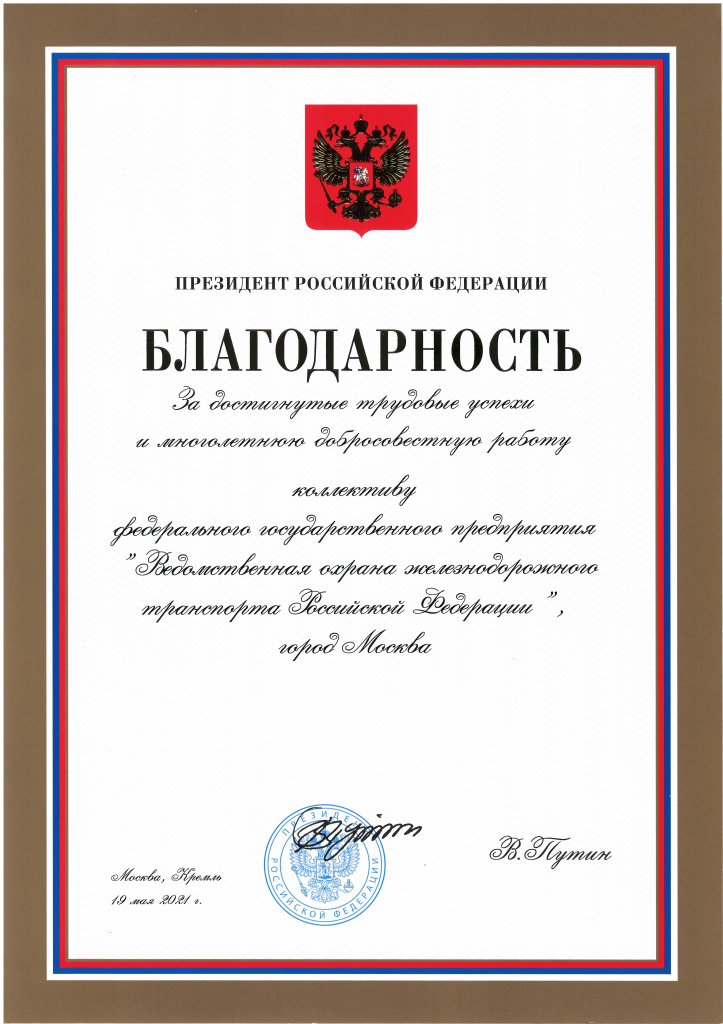 Учитывая значимость вопросов, решаемых ведомственной охраной, Указом Президента Российской Федерации Предприятие включено в перечень cтратегических.