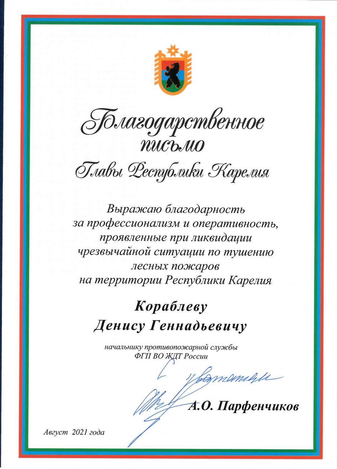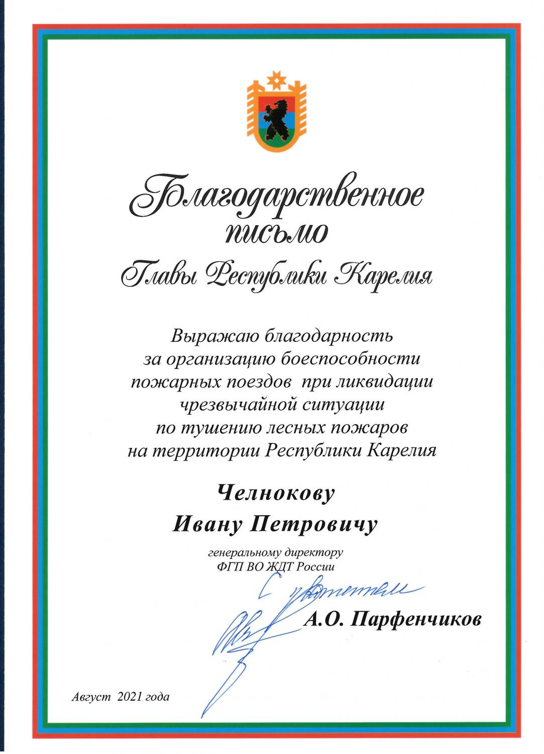 Благодарность Карелия