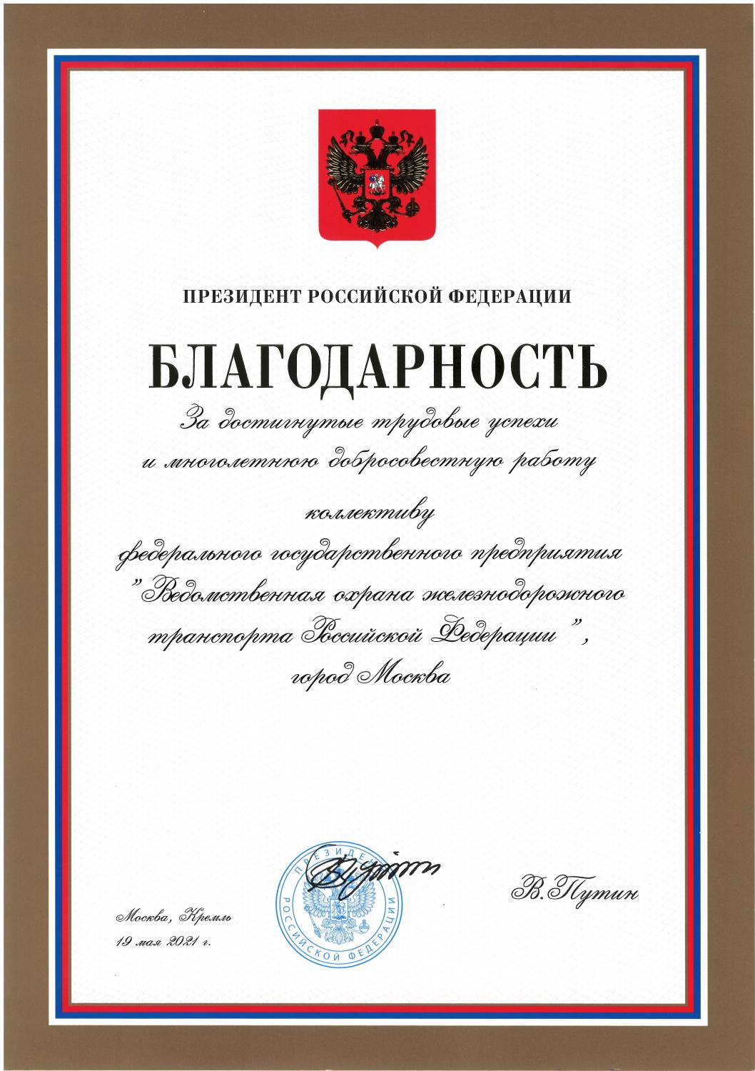 Благодарность президента