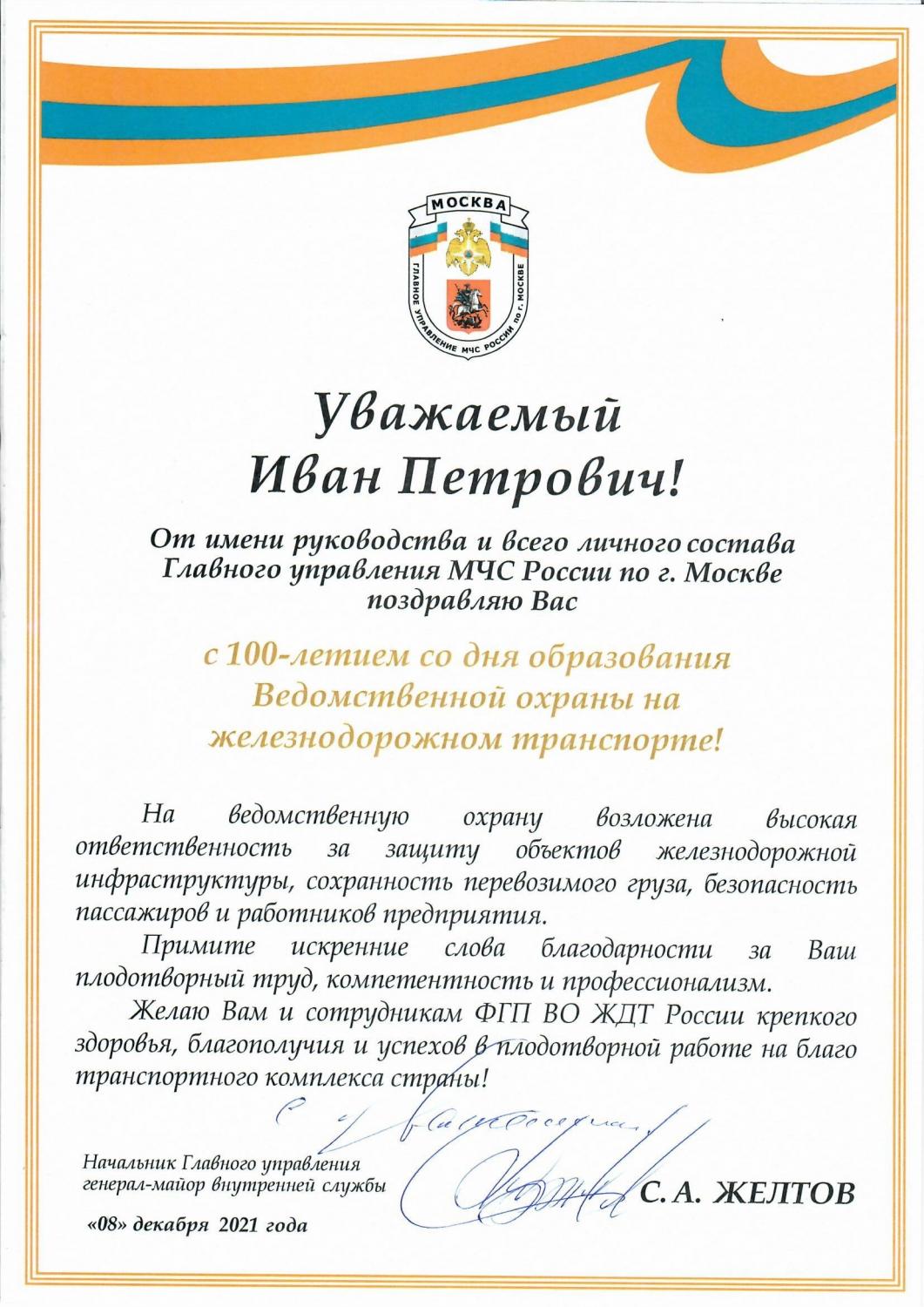 Поздравление ГУТ МВД